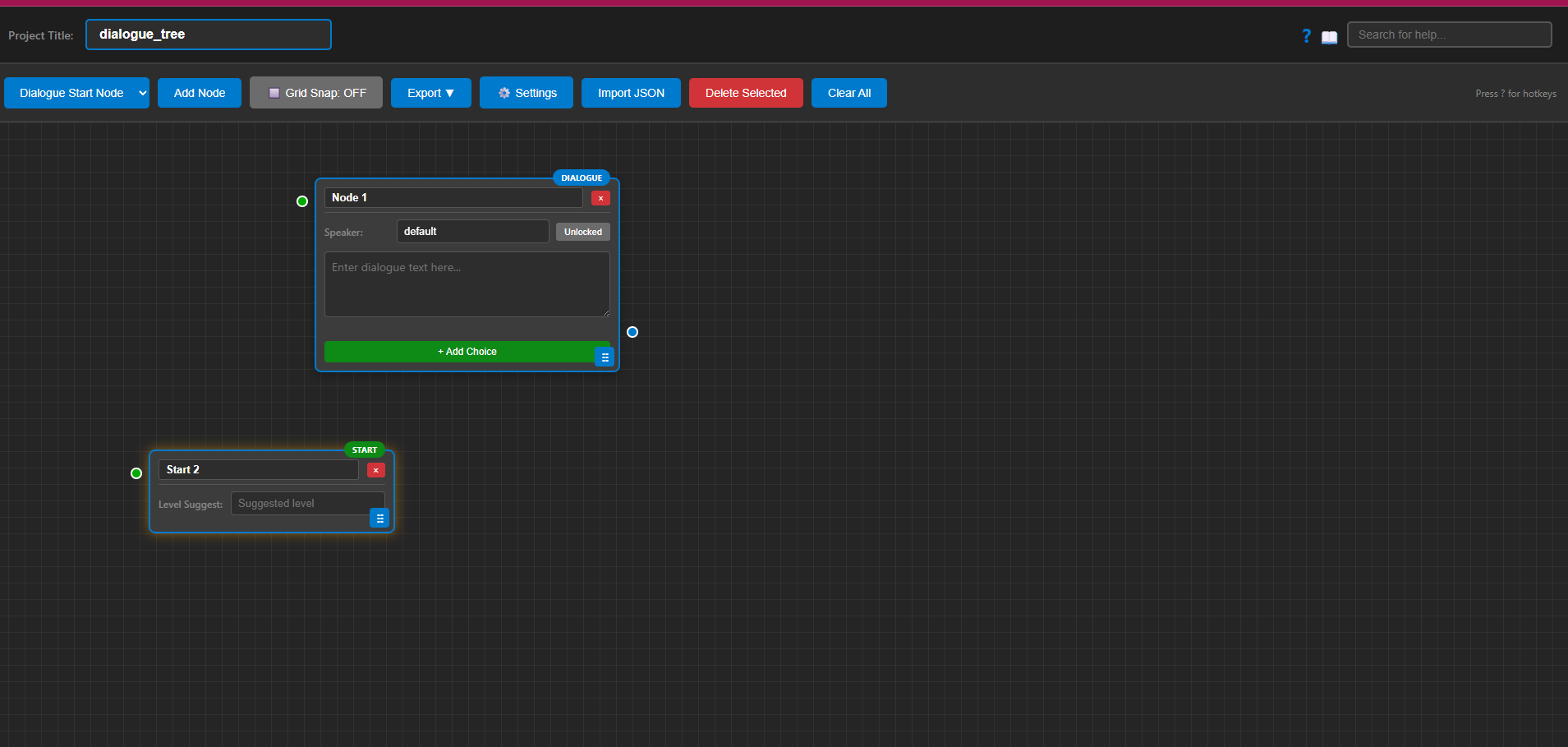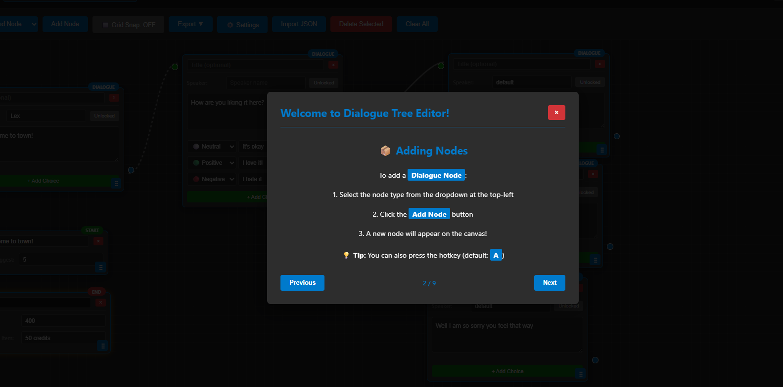 | Tags | dialogue-system, dialogue-tree, game-asset, json, node |